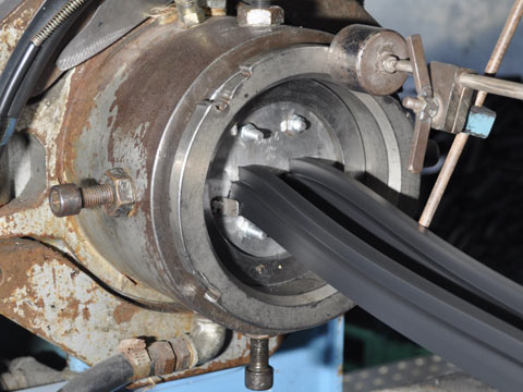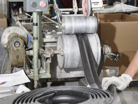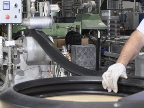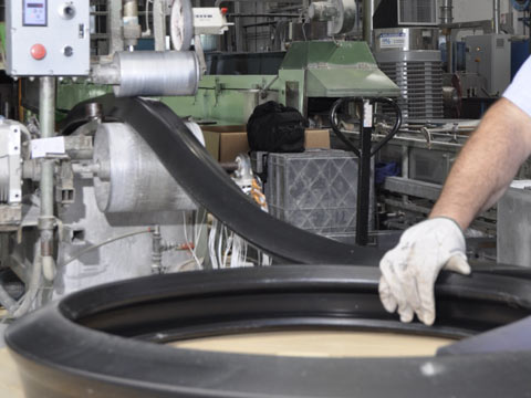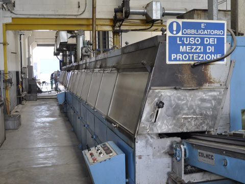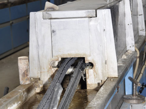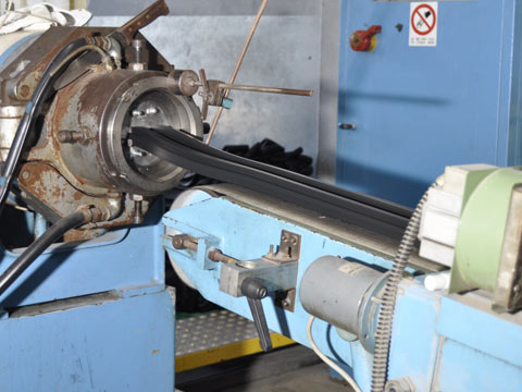 La tecnologia di vulcanizzazione a Sali fusi prevede che il profilo di gomma cruda anneghi in una vasca di sale fuso a temperature di 280°,dove il profilo viene tenuto immerso tramite dei nastri trasportatori, la buona velocità di vulcanizzazione + 25% rispetto a forni convenzionali ad Aria Calda permette di ottenere ottimi risultati con profili a geometria semplice. Questa tecnologia si è evoluta con l’impianto a Sali fusi di nuova generazione che prevede che il profilo galleggi in superficie sul sale fuso in una vasca, contemporaneamente sulla parte superiore il profilo viene investito da aria calda ad alta velocità ed una pioggia di sale fuso, questo permette di ottimizzare la vulcanizzazione anche di profili con geometrie complesse, non essendo per principio il profilo soggetto a spinte gravitazionali come nella tecnologia ad immersione.